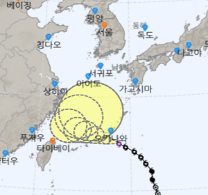 (위성으로 태풍을 보면 매우 정확히 경로를 알수 있습니다.)