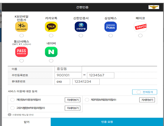 | 4.본인인정 간편인증 진행 | 5.간편인증 인증요청 | 6.단속건수 확인 |