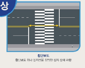※ 제7조에 따라 지정된 장소는 노면 황색 선(복선, 실선, 점선)으로 표시되며, 선 안과 바깥 모두 주차를 금지한다는 의미임.