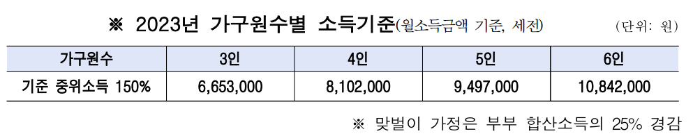 ‘서울형 아이돌봄’ 지원 대상은 24개월 이상 36개월 이하('23.10.기준)의 아이를 키우며, 맞벌이 등 양육 공백이 있는 중위소득150%(3인 가구 기준 월 665만 3,000원)이하 가구이어야 하고 친인척 육아 조력자의 범위는 돌봄 아이를 기준으로 4촌 이내의 19세 이상 친인척이며, 타시도에 거주하는 경우에도 육아 조력자로 활동이 가능합니다.
