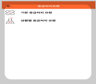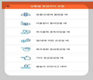 앱 메뉴 화면에서 상황별 응급처치 요령 선택 |