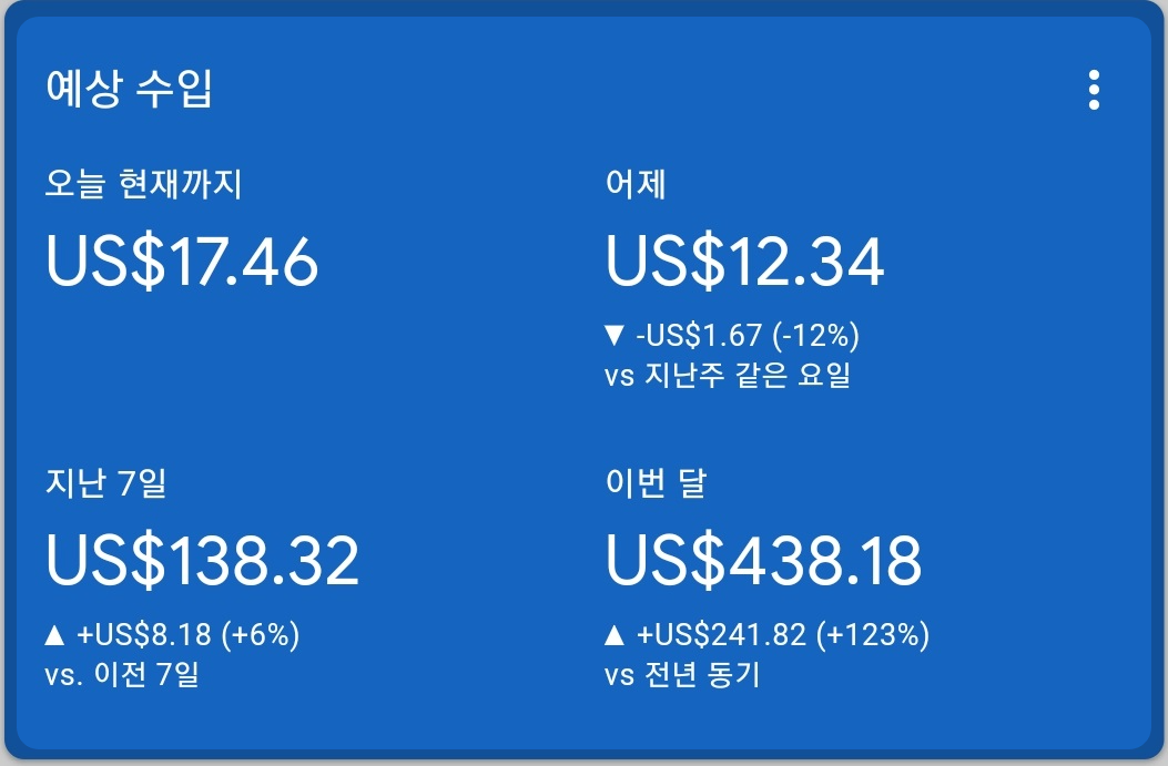 한 달 정도는 아로스 강의 듣고 정리하는 시간이었습니다. 솔직히 애드센스에 대해 제가 모르는 부분이 정말 많았고 또한 아로스 강의에서는 여러가지 개발 코드 삽입과 티스토리운영 방법을 배우고 터득하는 시기였습니다. 강의 한 달간 들으면서 내가 잘하면 어느 정도 수익을 낼 수 있겠다는 희망을 가지는 시간입니다. 그리고 아로스 강의 배운 내용대로 이렇게도 해보고 저렇게도 해보고 많은 실습과 경험을 쌓는 시간이 되었습니다.