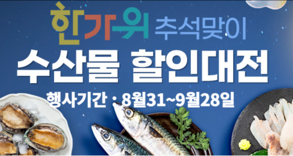 수산물 할인대전은 2023.1.2(월) ~ 2023.12.17(일) 행사 기간이지만 추석맞이 대한민국 수산대전 수산물 할인행사대전은 9월28일까지입니다.지금이라도 대한민국 수산대전 홈페이지에 방문하셔서 최대 73% 할인된 가격으로 추석선물을 준비해시는것을 권해드립니다.