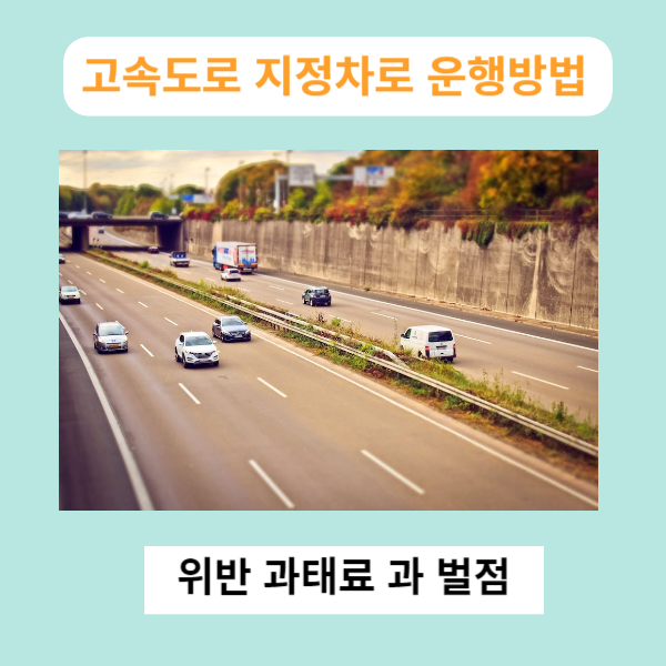 올해 7월부터 계도기간을 가진후 지정차로 위반차량에 대해 벌금과 벌점을 부과될예정이며 고속도록 주행시 암행어사 차량과 고속도로 곳곳에 AI드론을 이용하여 단속을 진행하고 있으니 명절또는 고속도로 장기간 이용시 지정차로위반에 대해 주의하시길바랍니다.