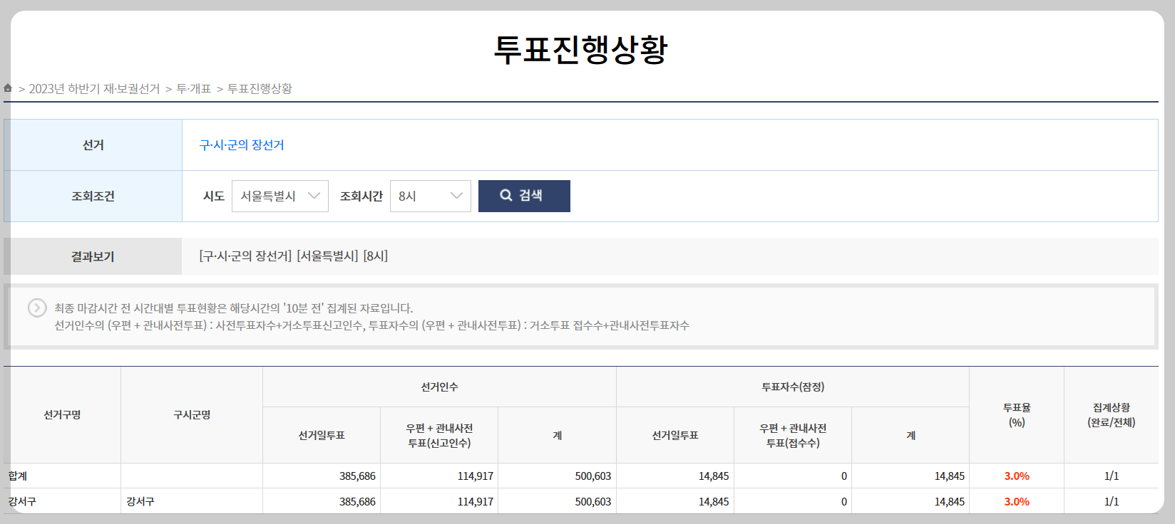 강서구청장 투표율 8시경 3%