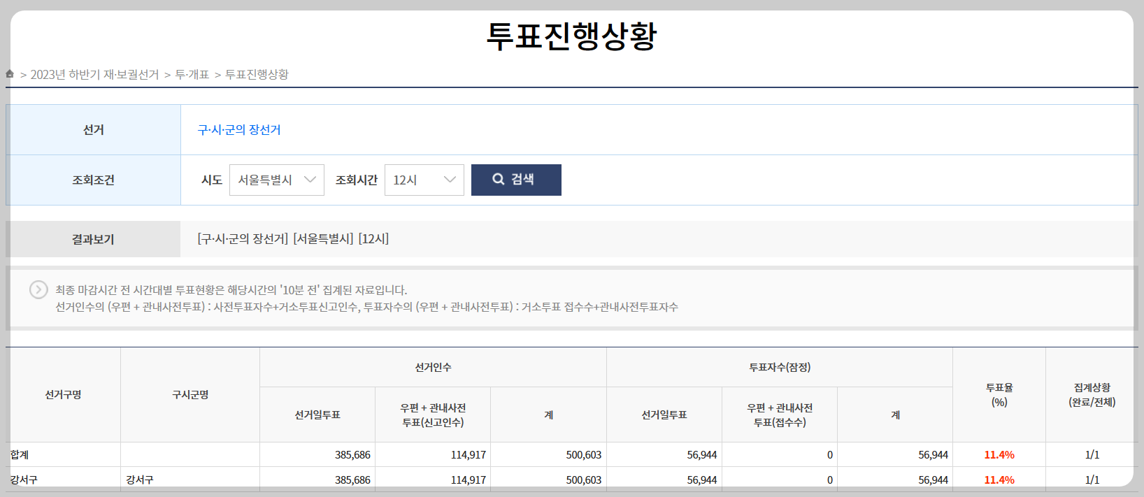 강서구청장 투표율12시경 11.4%