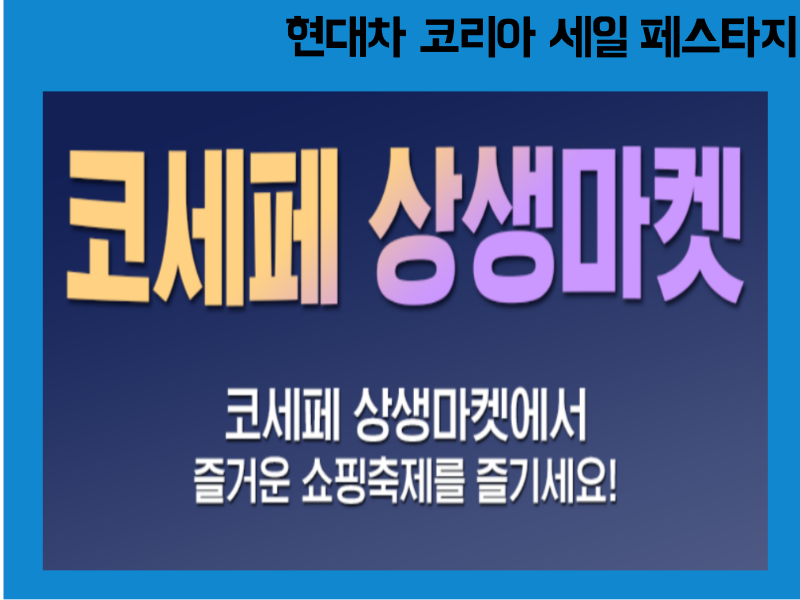 코리아 세일 페스타는 올해로 9년을 맞은 행사로 내수 진작과 경제활력제고를 위해 시행되는 행사입니다. 올해 역대 최대규모의 기업참여로 더 많고 다양한 할인품목과 할인율로 돌아왔습니다무엇보다도 현대자동차 코리아 세일페스타에 참여로 코리아 세일 페스타가 더욱 돋보이게 하고 있으며 현대자동차 코리아 세일 페스타기간동안 여러 할인 판매·다양한 혜택이 소비자들에게 주어집니다.현대자동차 코리아 세일 페스타 함께 하세요.현대자동차 코리아세일페스타로 차량구매하세요. 현대자동차 코리아 세일 페스타홈페이지로 링크를 통해 확인하세요.
