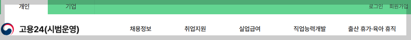 1. 고용24 홈페이지 개인및 기업선택후 로그인 선택.