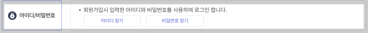 회원가입시 입력한 아이디와 비밀번호를 사용하여 로그인 합니다.