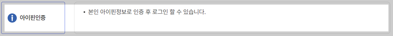 본인 아이핀정보로 인증 후 로그인 할 수 있습니다.