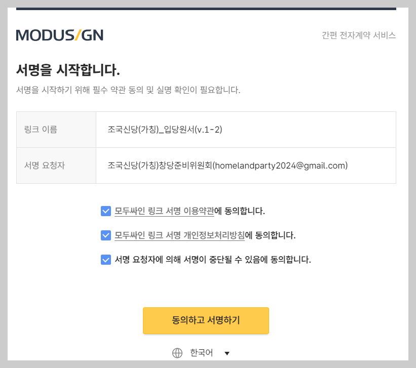 2.동의하고 서명하기 클릭