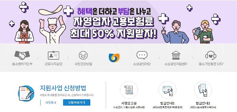 소상공인 사장님들의 어깨를 조금이나 가볍게 해 주고자 아래 자영업자 고용보험 (자영업자 실업급여)지원사업을 소개하오니 확인하시고 대상자가 되시면 신청하시길 바랍니다. 저 또한 혜택을 받고 있으며 적은 금액이지만 공짜로 자영업자 고용보험을 가입된 기분입니다.