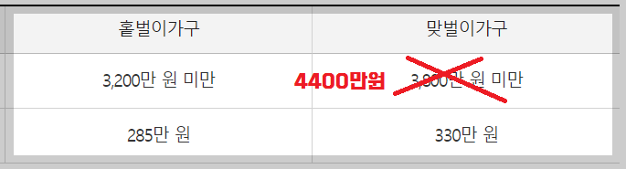 | 맞벌이가구 | 신청자 본인과 배우자 각각 총 급여액이 300만 원 이상인 가구 |