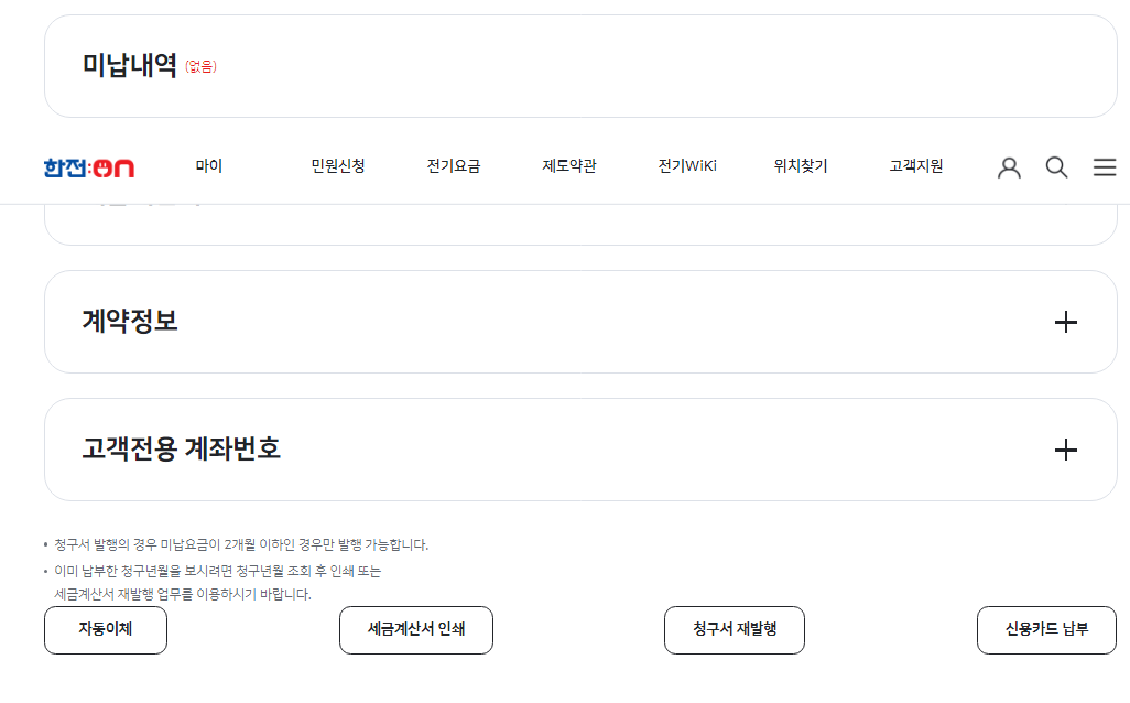 | 월별요금내역및 작년도 요금비교 | 전기요금 상세내용 | 기타 내용확인 |