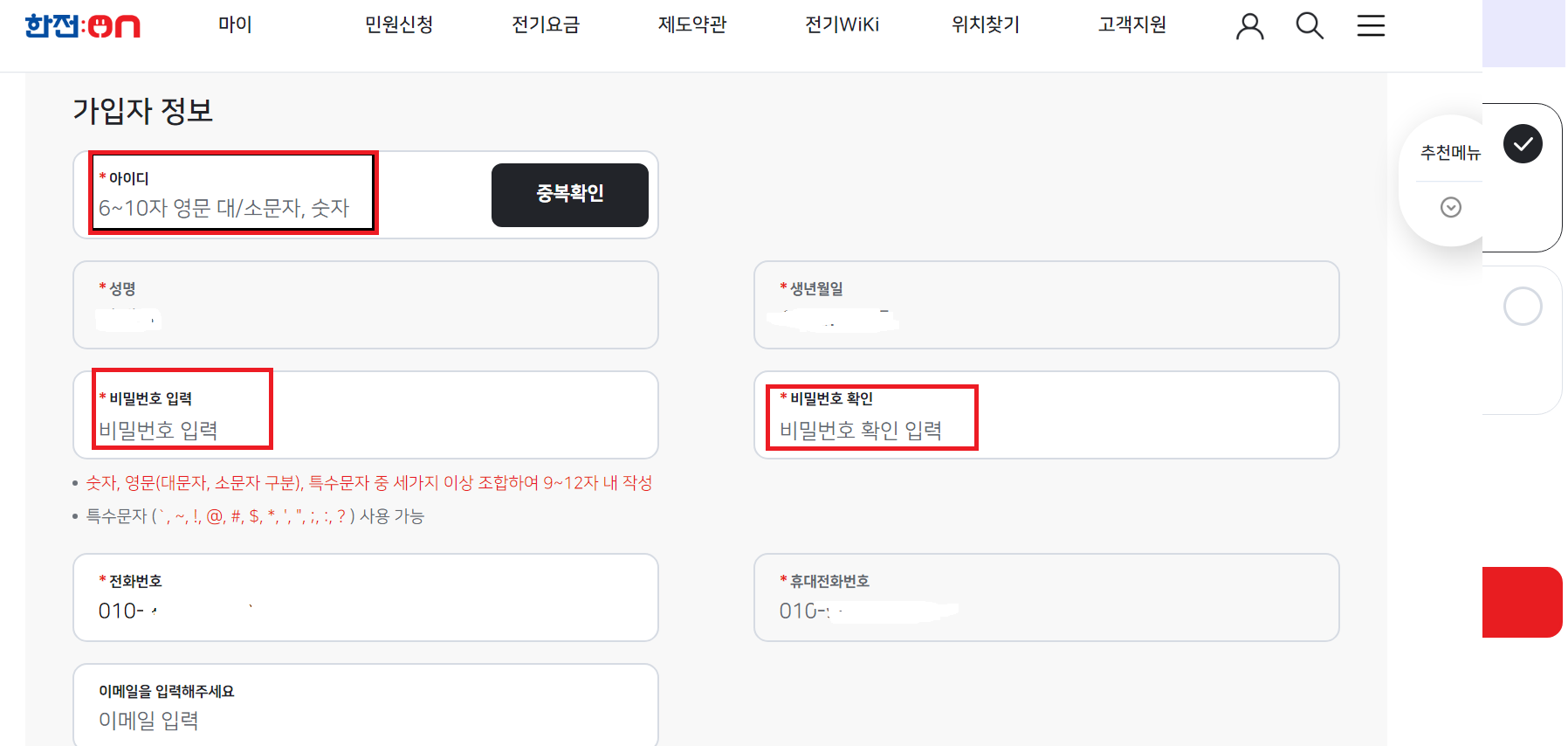 3. 전기요금 고객번호생성 및 회원가입방법