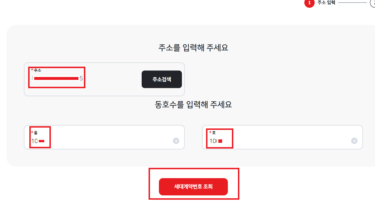 | 회원가입완료 | 재로그인후 요금조회선택 | 주소입력및 본인확인 | 고객정보입력 |