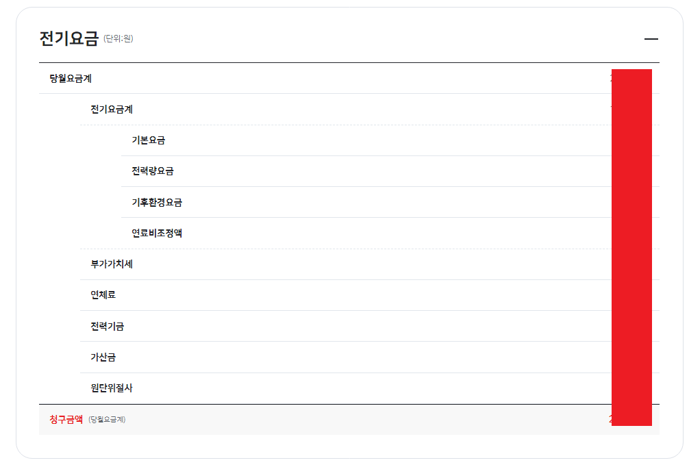 | 기본요금 | 전력량요금 | 기후환경요금 | 연료비조정요금 |